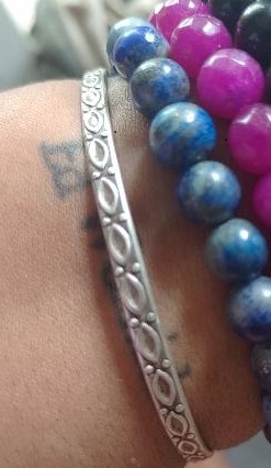 I now wear a thin silver bangle permanently on my left wrist. It’s gotten bent out of shape over the years but I don’t ever remove it. I bathe with it on and it’s always on, no matter what else is. It has etchings of the symbol of the Yoni, the Great Mother. I don’t need to say what that means to me.